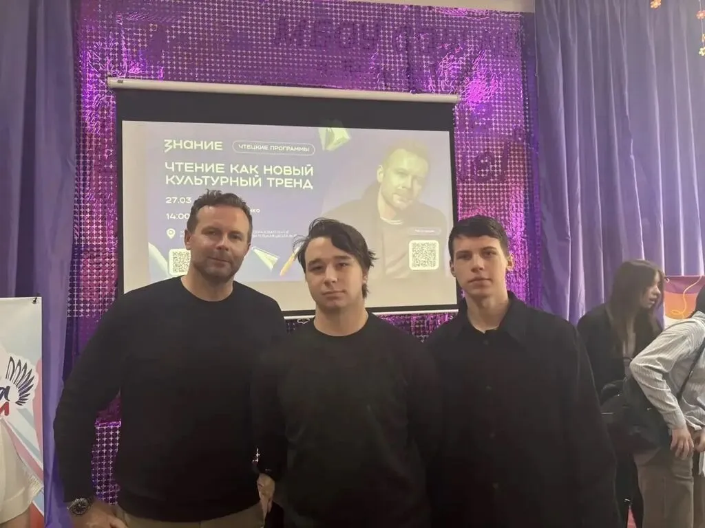 Клим Шипенко - создатель фильмов "Холоп", "Холоп 2", "Вызов" и др. От нашей школы на эту встречу пришли ребята из театральной студии "Новый взгляд" и призёр конкурса (2 место) "Живая классика" Крылова Елизавета 7а, которая исполнила отрывок из произведения "Рикки- Тикки -Тави" Киплинга.