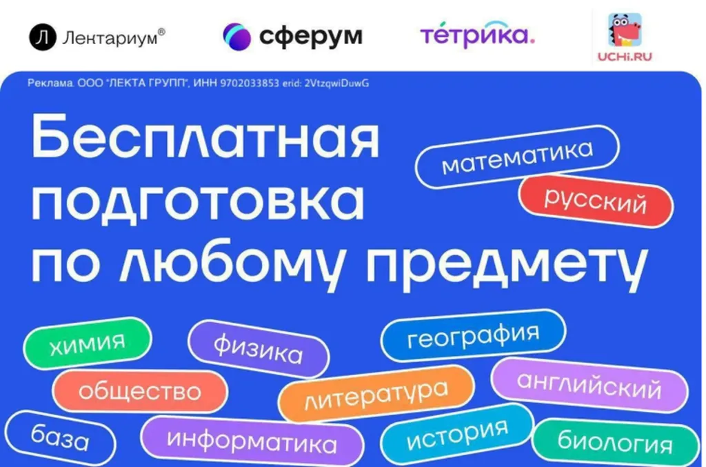 В рамках поддержки подготовки к государственной итоговой аттестации 2026 года нашей школе предоставлен БЕСПЛАТНЫЙ доступ к лицензированной платформе «Лектариум» (ООО «ЛЕКТА ГРУПП») (резидент Сколково) по любому предмету — до конца учебного года.