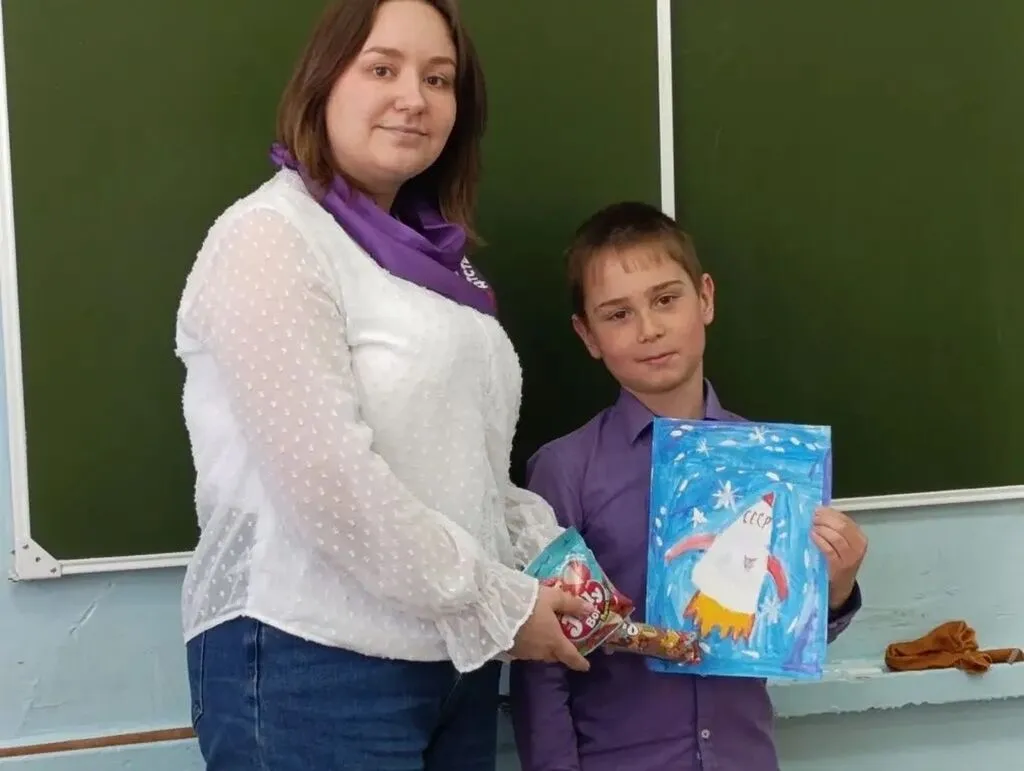Награждение участников конкурса рисунков среди учащихся 4 класса «Первые в космосе» приуроченного ко Дню космонавтики